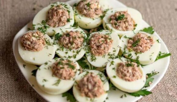 Si quieres desayunar algo diferente prepara esta receta de huevos rellenos de atún y mayonesa.